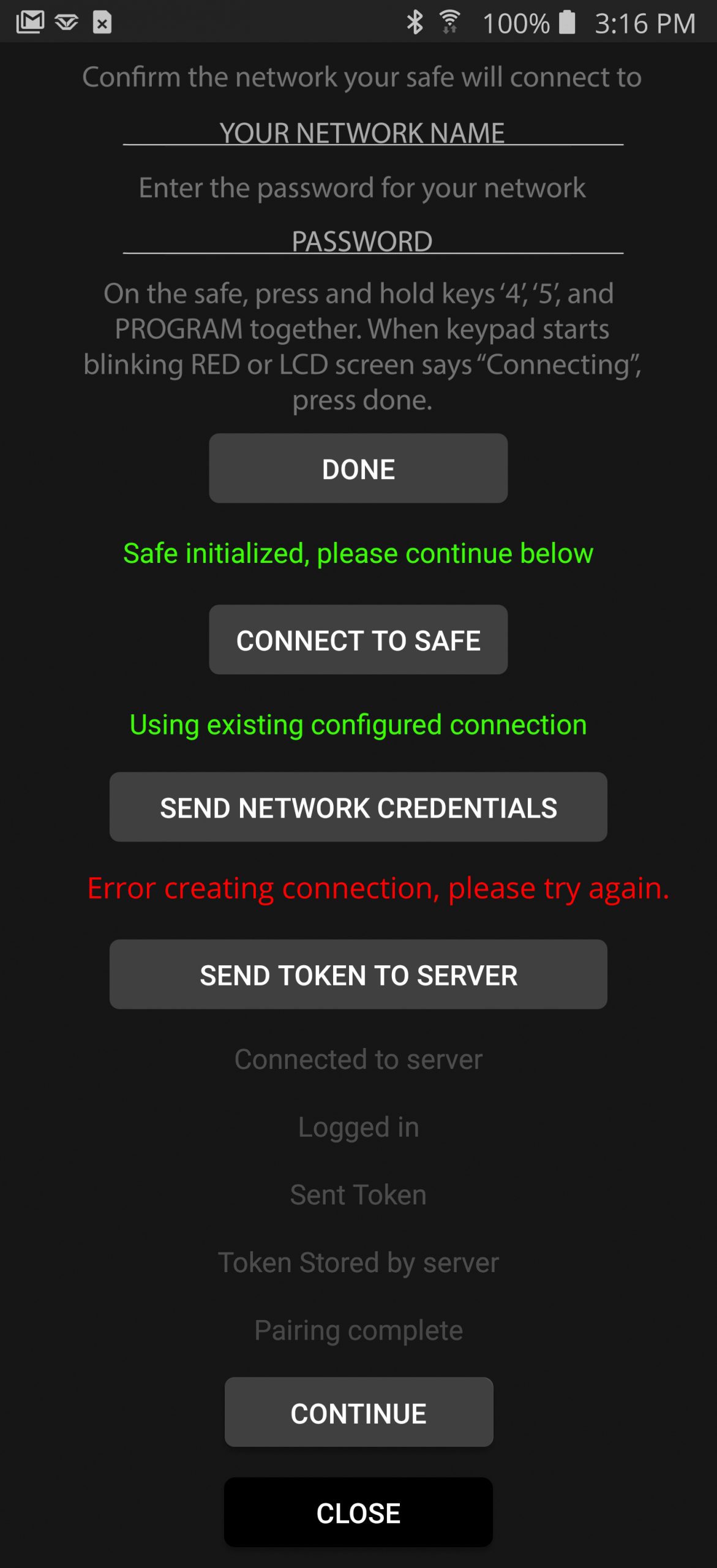 - Check to see if proximity issue and try again with the safe closer to the router.