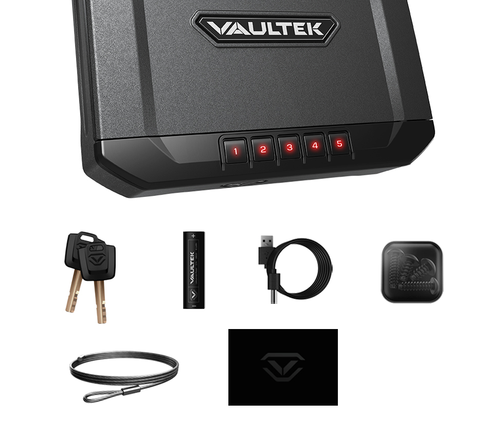 - Signature Vaultek™ anti-theft features include anti-pry bars and dual anti-impact latches for prevention against break ins. Standard features available across the entire Vaultek™ line up.