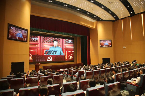 大会上,习近平总书记的讲话声声有力,句句铿锵,振奋人心的话语让天安门广场响起了长久热烈的欢呼声,我校各会场也掌声不断。师生们专注聆听讲话,深受鼓舞、心潮澎湃,表示必将深入学习习近平总书记的重要讲话精神,深刻领会讲话的时代意义、科学内涵、核心要义和实践要求,更加坚定理想信念,不负时代与人民。
