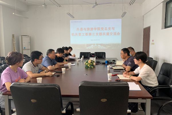 6月7日,外语与旅游学院党总支与机关党工委第三支部组织展开了党建共建交流。外语与旅游学院党总支委员们、机关党工委书记徐晴、学生处处长徐悦、机关党工委第三支部书记赵健及支委参加了会议。会议由外旅学院党总支书记郭再泉主持。