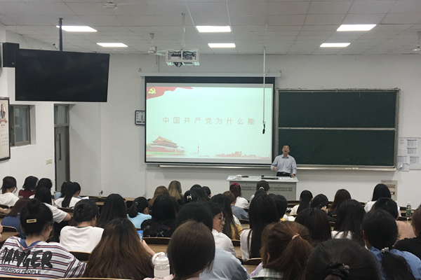 朱爱胜以《不忘初心、牢记使命——学习中国共产党百年辉煌史》为主题,向同学们详尽讲述了为什么学习党史、党史的基本脉络,并从八个方面概括了党史中蕴含的基本规律、经验与启示,指出在全面建设社会主义现代化国家新征程上,必须高举习近平新时代中国特色社会主义思想伟大旗帜,不忘初心,牢记使命,增强“四个意识”,坚定“四个自信”,做到“两个维护”,创造新的辉煌。龚方红以《中国共产党为什么能》为主题,从六个方面向大家阐述了中国共产党从小到大、由弱到强,带领中华民族迎来了从站起来、富起来到强起来的伟大飞跃背后的秘诀,指出,中国共产党有远大理想追求,有科学理论引领,有严明纪律规矩,有自我革命精神,有强大领导能力,正是依靠诸多优秀特质,中国共产党成为始终走在时代前列、人民衷心拥护、经得起各种风浪考验的马克思主义执政党。