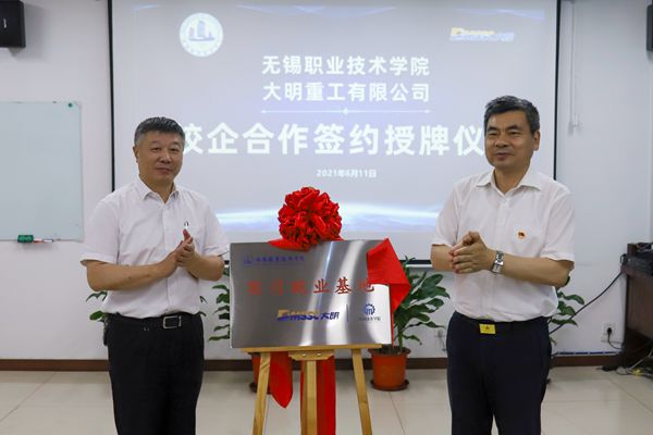 611日下午,学校党委书记朱爱胜、组织部部长刘文平与机械技术学院党总支第一教师支部教师一行,赴大明重工靖江基地开展了一场别开生面的校企党建联盟和实习就业基地共建签约、授牌仪式。大明重工集团总裁王健,大明集团生产技术总监兼人事行政总监王小建等企业领导热情接待了我校一行。