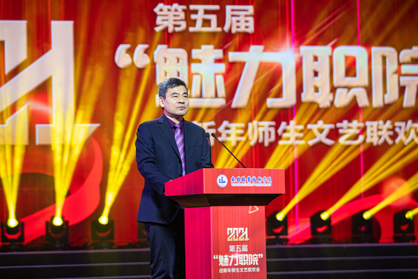 演出之前,校党委书记朱爱胜代表学校党委和行政向全校师生员工致新年贺词。朱爱胜指出,2020年是极不平凡的一年,一年来,学校坚持以新思想为指导,深入学习贯彻党的十九大、十九届四中、五中全会精神和全国教育大会精神,接受了省委第十巡视组来校巡视,进一步压实党委全面从严治党主体责任。这一年,我们取得疫情防控和事业发展双胜利;并且突出立德树人、聚力协同创新、坚持人才强校、扩大开放办学,在人才培养、社会服务、师资队伍建设、国际交流与合作等方面取得了显著成绩。