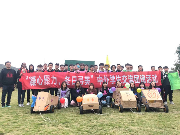 为了加强中外学生间友谊,加强国际教育理解,推动跨文化交流,同时拓宽中国学生国际化视野,丰富中外学生课余生活,促进学生心理健康,提高心理健康水平。11月21日,我校组织中外学生前往无锡万和农乐园军事拓展训练体验基地。