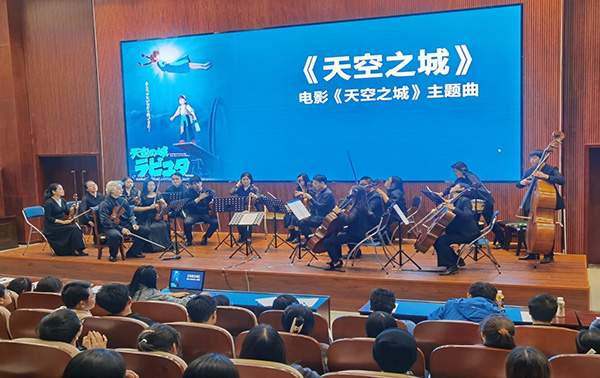 本次音乐会上,亚历山大室内乐团演绎了《加勒比海盗》、《寻梦环游记》、《千与千寻》等经典影视作品主题曲。其中电影《天空之城》主题曲给大家留下了深刻的印象。优雅婉转的风格,以合唱的和声织体形式写成,充满哀婉如歌的情绪,彷佛让听众置身于电影的场景当中。