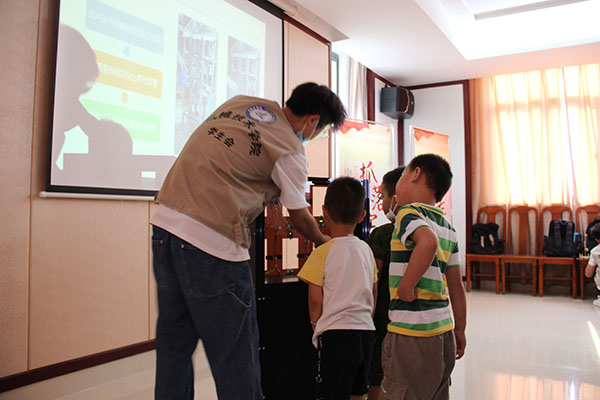 针对本次活动小朋友较多的特点,志愿者还精心增设了科技小实验环节。通过手工制作国旗升降台,让小朋友们了解国旗相关知识,培养爱国意识。通过小朋友自己动手制作瓶盖旋转飞车,培养小朋友在生活中学会动脑筋、废物利用、科技创新、保护环境的意识。