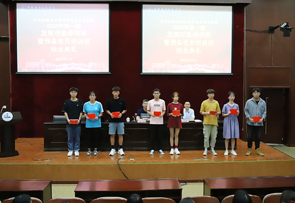 7月2日下午, 2020年第一期发展对象暨预备党员培训班结业典礼在国际交流中心一楼报告厅举行,校党委书记、党校校长朱爱胜,各学院分党校负责老师和培训班学员参加了活动。