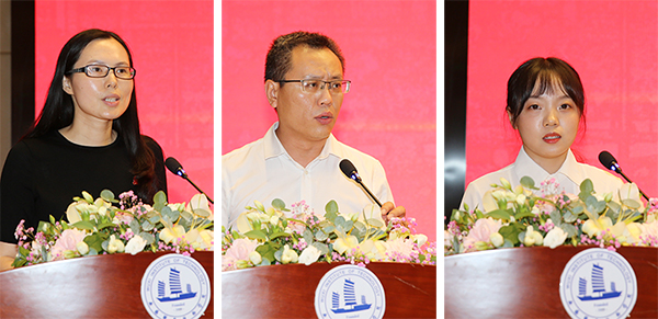 汪菊琴、苗勇、陈明媛三位同志分别发言,围绕各自在班主任工作、宣传思想工作等方面的情况分享了心得,交流了经验。到场校领导还与部分联系部门、学院党政负责人签定了意识形态责任书。