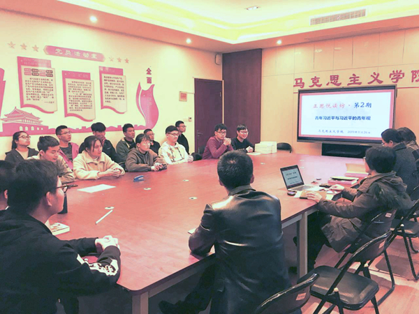 1126日下午,在明德楼A-315会议室,马克思主义学院组织了第二期“正思悦读坊”经典阅读活动,本期主题是青年习近平与习近平的青年观,主讲为江苏省高校青智库建设指导老师、无锡市青年大学生学习行动导师、我校马克思主义学院院长周春兰博士,互动嘉宾为马克思主义学院赵后起、汪少彬、赵淑华、沈小娟等老师,我校“习近平新时代中国特色社会主义思想青年学社”成员和其他自愿报名的同学参加了本次活动。