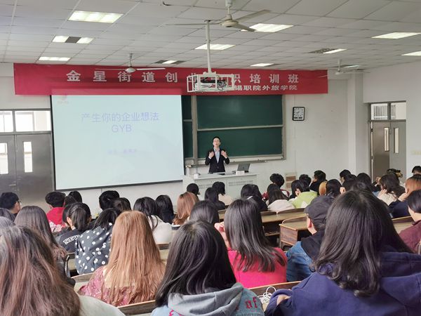 为了更好地落实“不忘初心、牢记使命”主题教育,切实为同学们做好实事好事,2019年11月10日和11月16日,外语与旅游学院联合金星街道人力资源和社会保障所,为2019级新生开展了为期2天的创业意识培训。