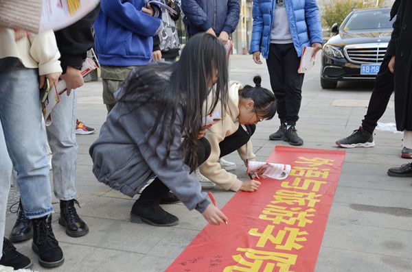 同学在志愿服务横幅上签名