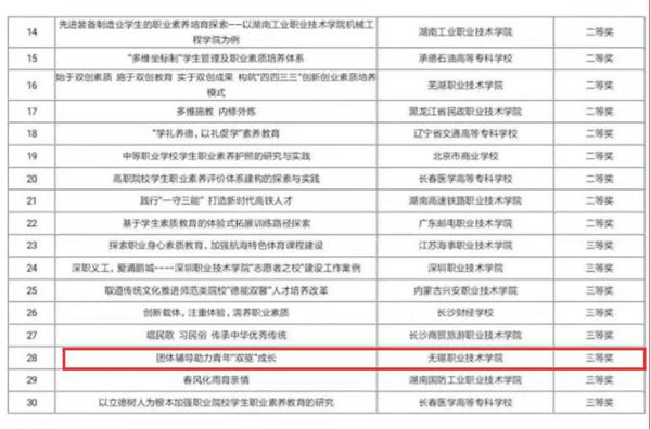 近日,全国职业院校学生职业素养培育联盟公布全国职业院校学生职业素养培育优秀案例评选结果。我校朱佳艺老师撰写的案例《职业生涯教育搭平台、专创融合课程赋能量、校企深度合作促成才》获得一等奖,任重威老师撰写的案例《团体辅导助力青年“双驱”成长》获得三等奖,展现了我校青年教师在研究、指导、培育职院学生的工作中不断实践、思考、总结的优秀教学风貌。