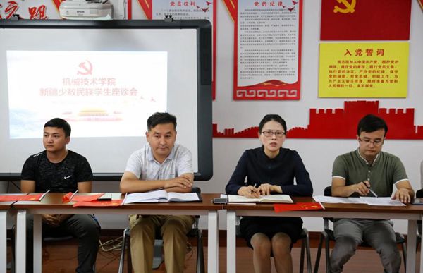 值此新中国成立70周年之际,为表达对祖国母亲的祝福,提升少数民族学生的爱国主义情感,9月27日下午,机械学院召开新疆少数民族学生座谈会暨庆祝新中国成立70周年爱国主义教育专题会。分院党总支副书记张静、学生处内派教师阿西木、机械学院少数民族学生专项辅导员塔衣尔及分院22名新疆少数民族学生参加了会议,座谈会由张静主持。