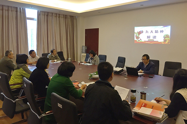 11月7日下午,思政部直属党支部组织学习党的十九大精神专题党课,支部委员屠春风老师为大家解读十九大精神。屠老师以“新成就、新时代、新使命、新思想、新征程”五个方面为切入点,以严谨的逻辑、翔实的资料为大家仔细梳理了十九大报告的框架脉络,深入解析了重要观点及概念的内涵要求、重要意义。