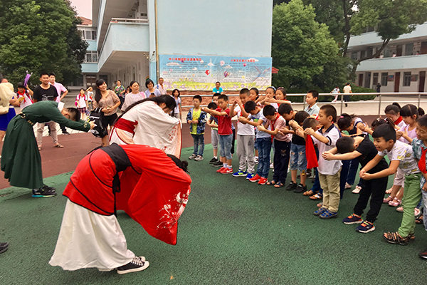 汉服社同学与孩子们互动