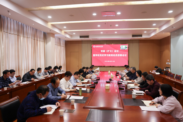4月15日下午,校党委在厚德楼F201召开扩大会议,研究动员部署党纪学习教育工作,校党委委员、纪委委员,各二级党组织负责人和相关工作人员参会,党委副书记、校长周桂瑾主持会议。