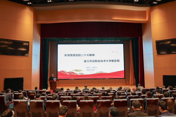 龚方红表示,党的二十大报告中关于职业教育的重要论述为我们准确把握职业教育工作,推进职业技术大学新征程提供了理论指导和行动指南。他强调,面对新使命新要求,我们要准确把握职业教育高质量发展的重要任务、内在要求,牢固树立大职业教育观,坚持为党育人、为国育才,把牢办学政治方向,奋力开启职业技术大学新征程,为推动中国特色职业教育发展服务中国式现代化贡献力量。