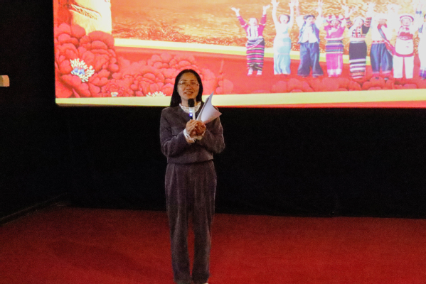 表彰环节结束之后,全体师生共同观看了电影《中国乒乓之绝地反击》,通过影片感受中国乒乓在进入低谷时,永不退缩,突破重围、为国争光的爱国主义精神。参加活动的少数民族同学表示,要励志勤学、刻苦磨炼,将小我融入大我,将个人奋斗梦融入到实现中华民族伟大复兴的中国梦中,以实际行动报效祖国。