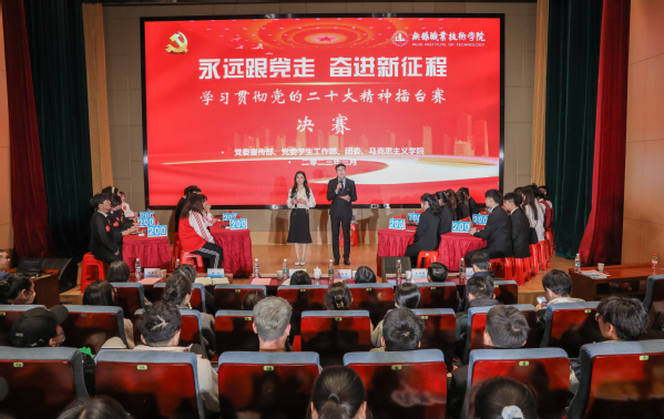 3月28日下午,学校厚德楼一楼报告厅唇枪舌剑、紧张刺激,“永远跟党走,奋进新征程”学习贯彻党的二十大精神擂台赛决赛火热开战,10支队伍、30名选手围绕党的二十大精神开展了烧脑大战,展现了良好的马克思主义素养和知党爱党兴党热情,展示了思政课学习的优秀成果。马克思主义学院青年教师宋俊成和路遥担任活动主持人。