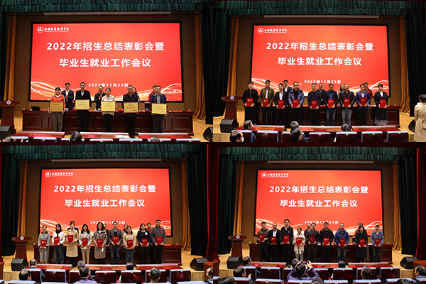 为进一步适应招生就业工作的新形势,激发全校师生参与招生就业工作的积极性,提升招生就业的工作水平,11月23日下午,学校在综合楼一楼报告厅召开2022年招生总结表彰会暨毕业生就业工作会议。招生办、教务处、学生处相关负责人,各二级学院党总支书记、副书记、毕业年级辅导员,各招生宣传片区负责人及招生宣传骨干、招生先进个人等100余人参加会议。校党委书记龚方红出席会议并讲话。会议由党委副书记杨雪琴主持。