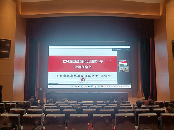 10月28日下午,学校在综合楼一楼报告厅召开党风廉政教育专题报告会,江苏省委党校廉政教育研究中心主任张桂珍教授应邀作《党风廉政建设和反腐败斗争永远在路上》专题报告。校领导、校纪委委员、中层领导干部、党总支(直属党支部)纪检委员等100余人到场聆听。报告会由校纪委书记李衔主持。