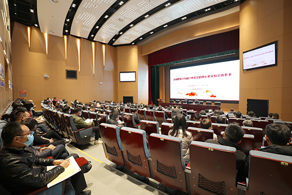 为深入学习贯彻党的十九届六中全会精神,落实省、市第十四次党代会决策部署,12月13日,学校在综合楼一楼举办十九届六中全会精神专题报告会,校领导、全体中层干部、马克思主义学院教师、辅导员,以及来自“科创无锡”党建联盟成员单位的党员代表参加报告会,会议由校党委副书记周桂瑾主持。