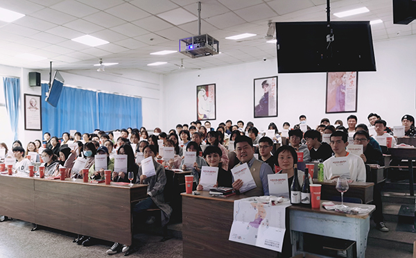 讲座分为中国葡萄酒产业概况、宁夏贺兰山东麓葡萄酒银川产区风土、产区内具有代表性风格的葡萄酒品鉴三个部分,在品鉴产区的特色美酒时,由专业学生进行侍酒服务,现场气氛轻松活跃。