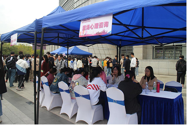 1028日下午,我校机关三支部在图书馆前开展党员志愿服务活动,组织了大学生职业生涯探索及咨询服务、大学生阳光心理文化节两项专场活动,共吸引1000余名同学参与。