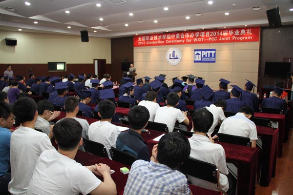 6月27日上午,中美合作机械制造与自动化专业2014届学生毕业典礼在国际交流中心二楼报告厅举行,这是我校第三届中美合作办学项目毕业生,其中有25人获得合作院校皮特社区学院副学士学位。