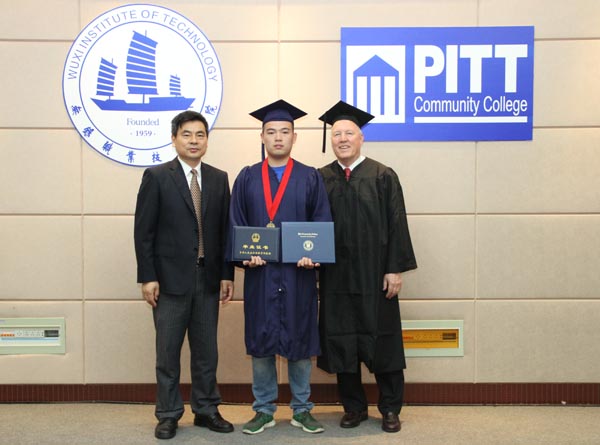 毕业典礼由机械学院总支书记吴慧媛主持,朱爱胜书记和马西院长分别致辞,对毕业班的学生们表达了祝福与期望,华坚副校长宣布了毕业情况和毕业生名单。经过中美双方三年的共同培养,机制11181班40名同学全部获得开云体育·开云官方网站毕业证书和皮特社区学院专业证书,朱爱胜书记和马西院长共同为毕业生颁发了证书。毕业生代表于广超同学用英语发表了精彩的毕业感言,优秀毕业生代表还向双方学校赠送了他们自制的作品。(机械)