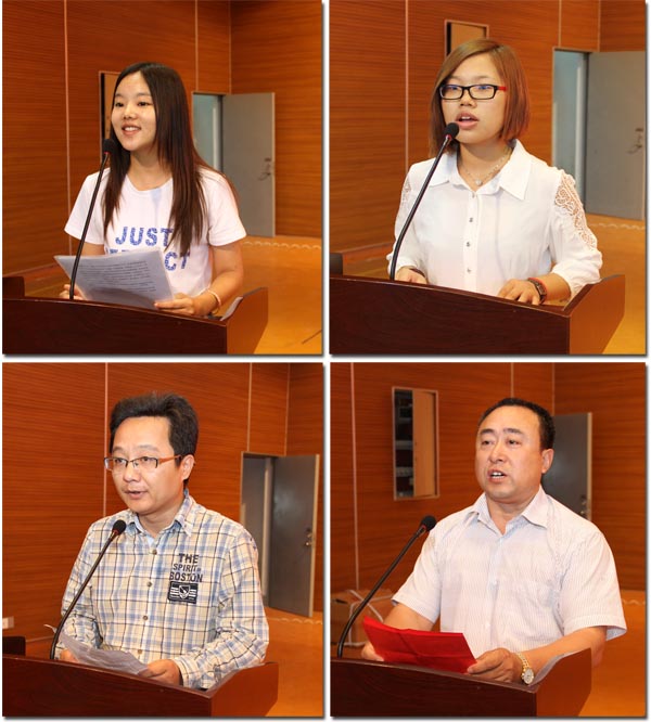 在校生代表、毕业生代表、教师代表和优秀毕业生家长代表先后发言,回顾了2014届同学在校的学习和生活情况,细数大家共同见证的母校发展历程,对即将开始的新生活进行了展望。教师和家长代表还对毕业生今后的工作和生活提出了殷切嘱托和中肯建议。