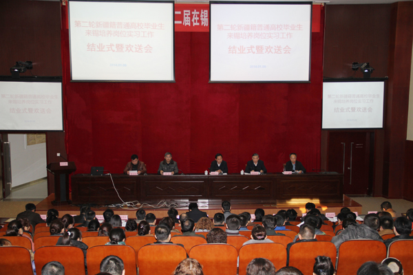 1月6日,第二批新疆籍普通高校毕业生来锡培养岗位工作总结会暨欢送会在我校国际交流中心一楼报告厅召开,114名学员实习工作圆满结束,顺利结业。来自锡山、惠山、滨湖、新区等实习接受单位参加了总结会。