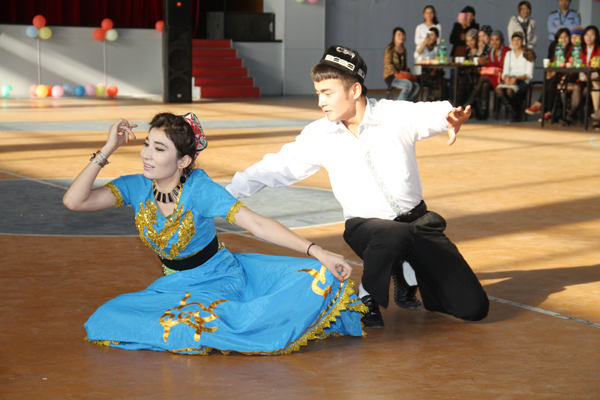 华坚副校长向新疆同学致以节日的祝愿和亲切的问候。新疆学生用精彩纷呈的歌舞展示出他们独特的异域风情和传统文化,欢快的节奏掀起了全场的阵阵高潮,活动现场洋溢着欢快的气氛。(石淑丹 房涵)