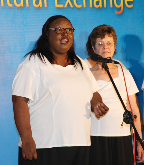 专场演出以歌舞《太湖美》拉开序幕,湖郡合唱团为大家表演了《你好,女孩》、《夏日时光》、《带我飞向月球》、《明天是我的舞蹈节》等精彩曲目,合唱团成员优美的歌声和生动的表演深深吸引了在场观众。我校大学生艺术团也上演了《姐姐是朵飘香的花》、《老街人家》等获奖节目。整场演出在中美合唱《友谊地久天长》的歌声中落幕。(谭紫贤)