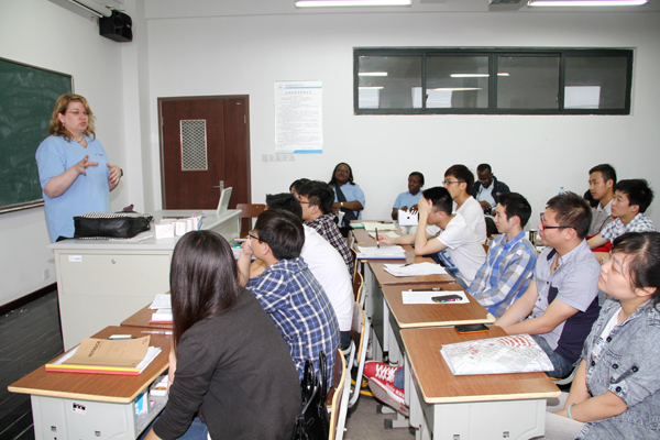 5月29日下午,校领导戴勇、华坚、曹建林及国际教育学院、团委等相关部门负责人在国际交流中心二楼会议室接待了合唱团成员,戴勇校长回顾了两校文化交流的渊源,充分肯定了美国社区学院国际发展联盟的国际交流平台作用,并预祝两校此次文化交流活动圆满成功。曹建林副校长向合唱团成员介绍了我校发展概况。当晚,CLC代表团美籍华人于丽华博士为我校学生开设了题为《美国人的婚姻与家庭》的讲座,详细介绍美国家庭的历史演变。