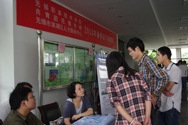 6月13日下午,共青团无锡市委、滨湖区高层次人才服务中心与我校联合举办的2013年暑期实习专场招聘会在J3大厅举行,来自无锡、苏州等地的31家企业为在校学生提供了500多个实习岗位。