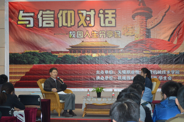 5月8日下午,校团委“与信仰对话——校园人生分享会”系列活动在国际交流中心二楼报告厅拉开帷幕,首场活动邀请了校长戴勇教授与机械技术学院50多名同学分享人生经历,勉励学子成长。