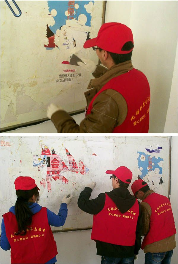 志愿者在清除小广告