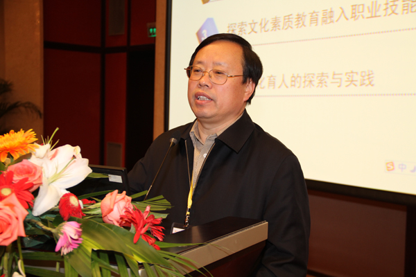 在6日的论坛上,职教专家董云川、刘洪一、于德弘分别作了主题报告,参会代表们在下午的分论坛中也围绕“文化育人与高职特色”等主题进行了热烈的研讨。在7日上午的大会交流发言中,北京、上海、浙江、湖南、宁夏、江苏等地的6所高职院校的书记、校长从理论和实践的结合上,分别介绍了各校创建特色校园文化、探索文化育人路径、加强职业人文素质教育、融合技术教育与艺术教育、构建特色文化育人体系等成功经验。我校党委书记朱爱胜结合我校文化素质教育体系的构建和实施,论述了高职文化素质教育的“知”与“行”,提出新形势下高职院校要从时间、空间方面不断贴近区域、贴近网络、贴近专业,拓宽文化素质教育的方法和途径,并介绍了我校将吴文化的精神元素,不同行业的文化元素,时代进步中形成的数字化、网络化的生活方式,融进校园、融进课堂、融进学生校园活动,大力营造高素质技术技能型人才培养新环境所取得的成效。