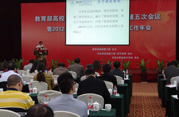 10月19日,教育部高校图工委高职高专工作组第五次会议暨2012年全国高职院校图书情报工作年会在石家庄举行,教育部图工委副主任、我校冯渊副校长在会上作了题为《实践创新,提升高职高专图书情报工作的质量与水平》的主题报告。