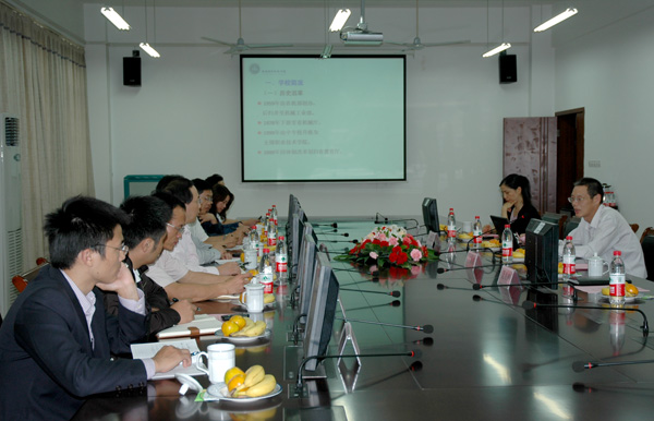 10月16日下午,江苏经贸职业技术学院党委副书记、副院长薛茂云一行8人来到我校,考察交流国家示范(骨干)院校建设项目的相关经验。党委书记朱爱胜、党委副书记谈向群在国际交流中心205会议室接待了宾客,发规处、财务处、审计处等相关部门负责人参加了交流。