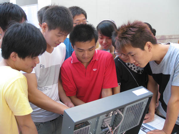 在技术讲演现场,数控设备专业近百名同学利用课余时间参加了新技术讲演,巡展车上配置了西门子专门针对数控系统市场推出的SINUMERIK 808D系统及828D Basic数控系统。同学们兴趣浓厚,一个个依次动手调试了新系统,尝试设置机床参数等。(徐安林)