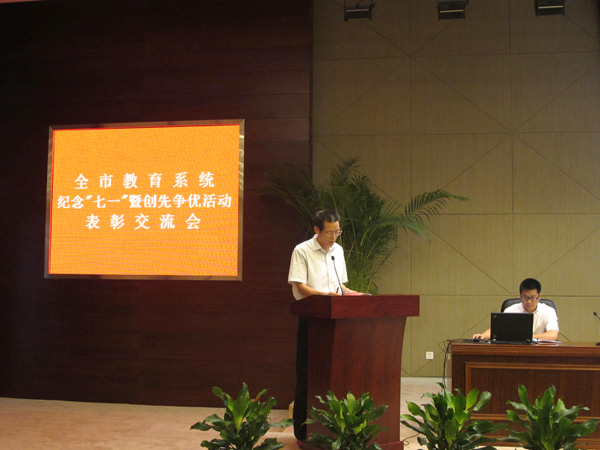 6月28日下午,全市教育系统纪念“七一”暨创先争优活动表彰交流会在市民中心举行,会上,教管中心、惠山区、我校等6家单位先后进行交流发言,介绍各自在创先争优活动中的做法和经验。