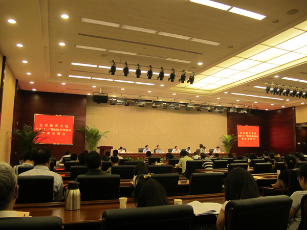 校领导在全市教育系统交流创先争优经验