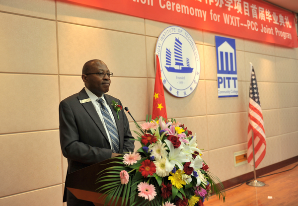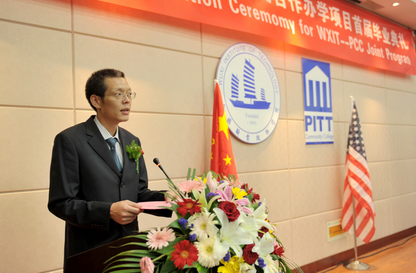 6月16日下午,我校中美合作办学项目首届毕业典礼在太湖校区国际交流中心二楼报告厅举行。在这场简洁而意义深远的毕业典礼上,有35名同学获得美国皮特社区学院专业证书,其中14名同学还获得了皮特社区学院的副学士学位。