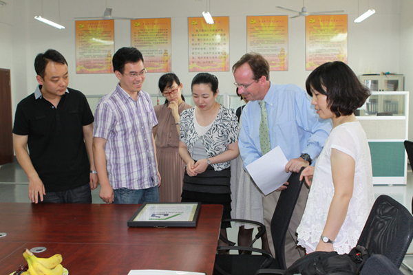 6月15日上午,美国皮特社区学院的两位代表丹•梅奥和安德鲁•格雷戈里在国际教育学院崔凤娟老师的陪同下来到艺术设计系参观交流。