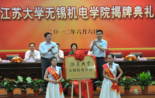 随后,江苏大学田立新副校长和我校朱爱胜书记共同为江苏大学无锡机电学院揭牌。华博雅副市长、徐子敏处长、范明书记和朱爱胜书记共同按下启动电钮,当“高职本科联合培养启动”字样出现时,现场响起了热烈的掌声。