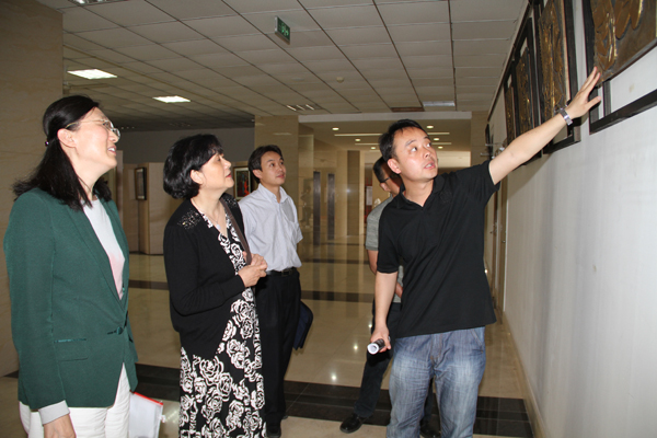 领导一行实地察看了我校图书馆一楼的师生艺术作品展后,顾京副校长向刘扬生副处长简要汇报了开云体育(中国)、学校面临的形势、十二五规划总体目标和公共艺术教育四个方面的内容,数字艺术系助理孟剑飞详细阐述了近三年我校公共艺术课程建设情况,团委书记徐悦介绍了大学生社团开展活动的情况。