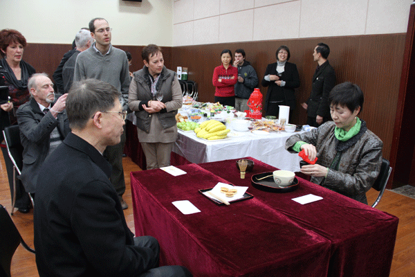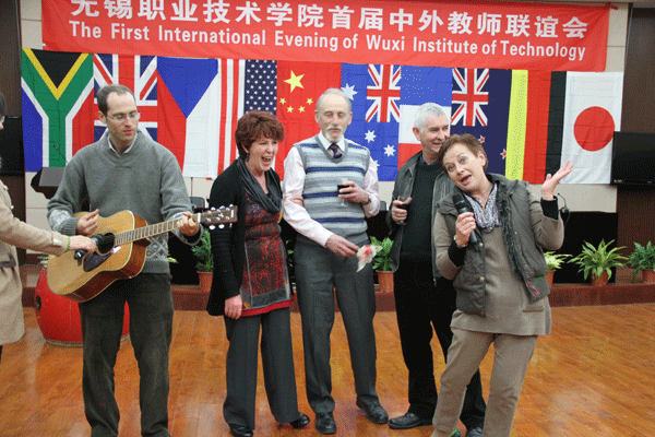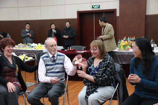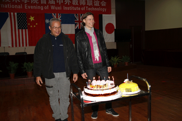 此次参加联欢活动的外籍教师及其家属分别来自美国、英国、日本、澳大利亚、新西兰、南非、法国、德国、捷克、印尼等10个不同的国家。当晚,全体中外教师还为德语Dirk和法语教师Thierry庆祝了生日。在学校已工作六年的日本籍外教畠山悦子现场表演了日本茶艺,其优雅的表演深受大家欢迎;机械技术学院孙燕华院长表演的中国功夫扇英姿飒爽,赢得了满堂喝彩;中外教师参与的击鼓传花游戏紧张而有趣,英国籍外教Joshua一曲西班牙语情歌吉他弹唱让人陶醉……