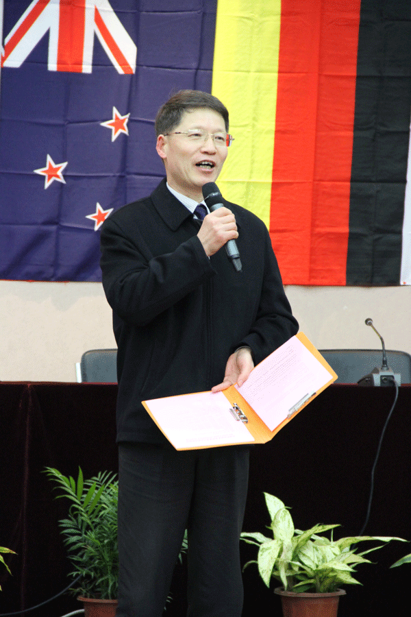 戴勇校长回顾了自2004年获得聘请外国文教专家的资格以来,我校聘用外籍教师的发展情况,认为近年来中外教师的共同努力和合作教学不仅活跃了学校语言学习的氛围,提升了教育教学水平,同时也促进了学校校园文化的多元化发展,进一步推进了学校的国际合作与交流工作。